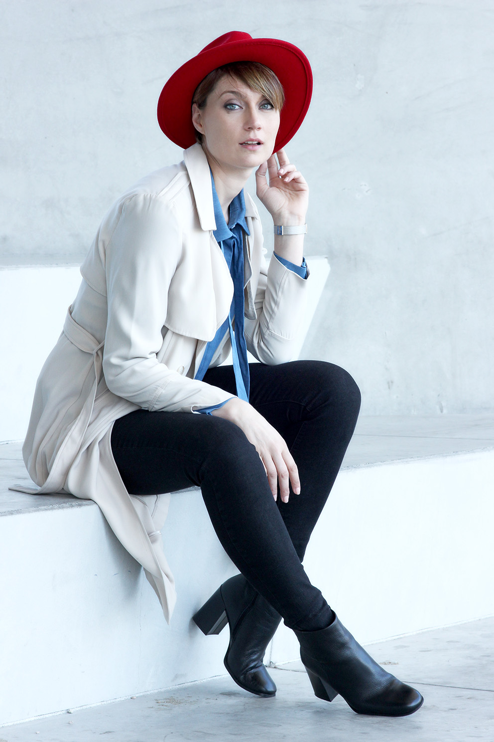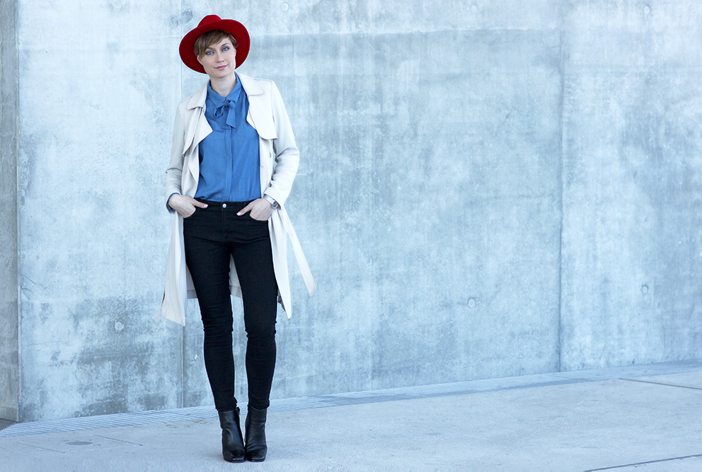 Trench New Look, Chemise Kiabi, Jean Zara, Chaussures Sacha, Montre Lotus, Chapeau Brixton