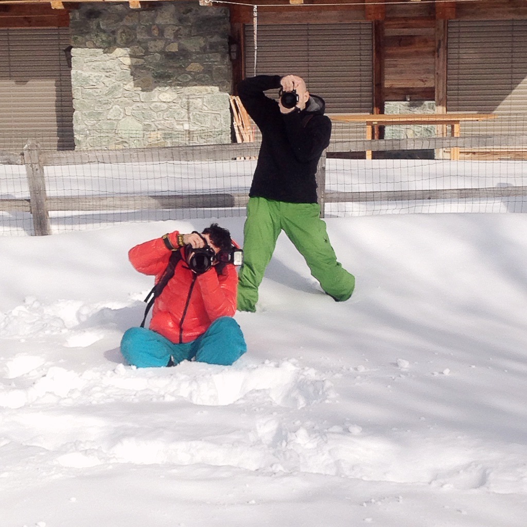 Les blogueuses de mode russes, qui prennent la pause, pommettes rosées et pieds dans la neige, m’ont toujours fait rêver. Alors forcément, l’occasion était trop belle pour passer à côté. J’ai enfilé ma veste en fourrure (en ce moment soldée chez Zara) et ma petite jupe colorée, pendant que les mecs chaussaient les crampons. Et nous sommes partis en vadrouille au milieu du désert blanc, pour shooter ce look, qui, vous l’imaginez, s’est finalement terminé en bataille géante de boules de neige. Et qui fut la principale cible , à votre avis ? C’est Bibi, évidemment !