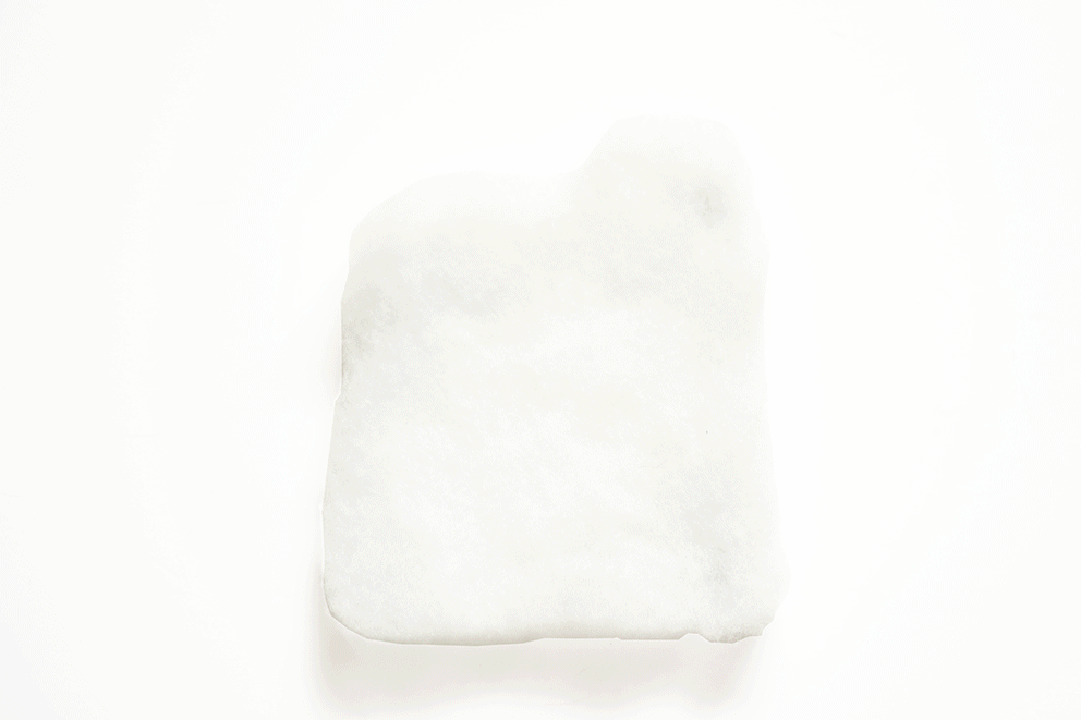 Pour donner un peu de moelleux à tout ça, nous allons rajouter de la ouate dans notre appareil photo. Pour ce faire, découpez deux morceaux d’ouate, de la même forme que les deux morceaux précédemment découpés.