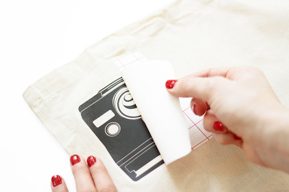 Retirez le papier de protection. Ça y est, votre transfert est appliqué sur le tote bag.