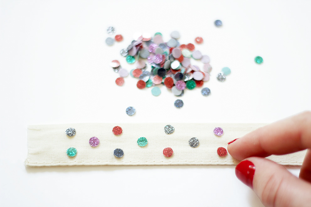 Réalisez ensuite une cinquantaine de petits confettis dans les chutes de tissus thermocollants avec la perforatrice.