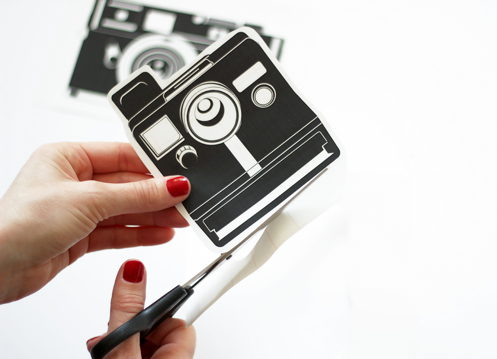 Passons maintenant à la création de l’appareil photo. Pour commencer, téléchargez et imprimez sur le papier transfert le dessin de l’appareil photo vintage, puis découpez vos dessins, à 1 cm du bord.