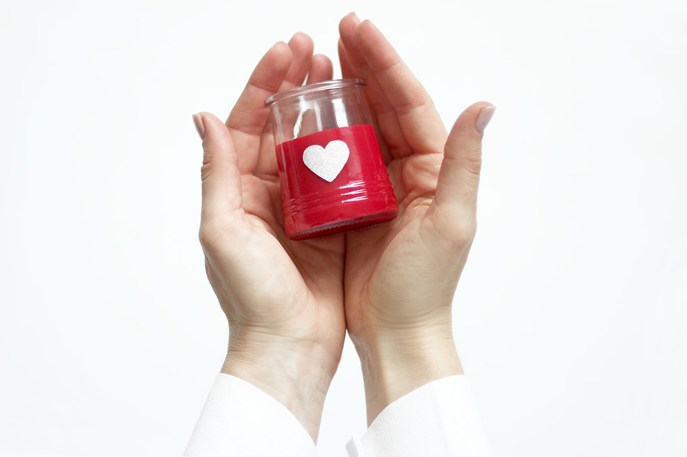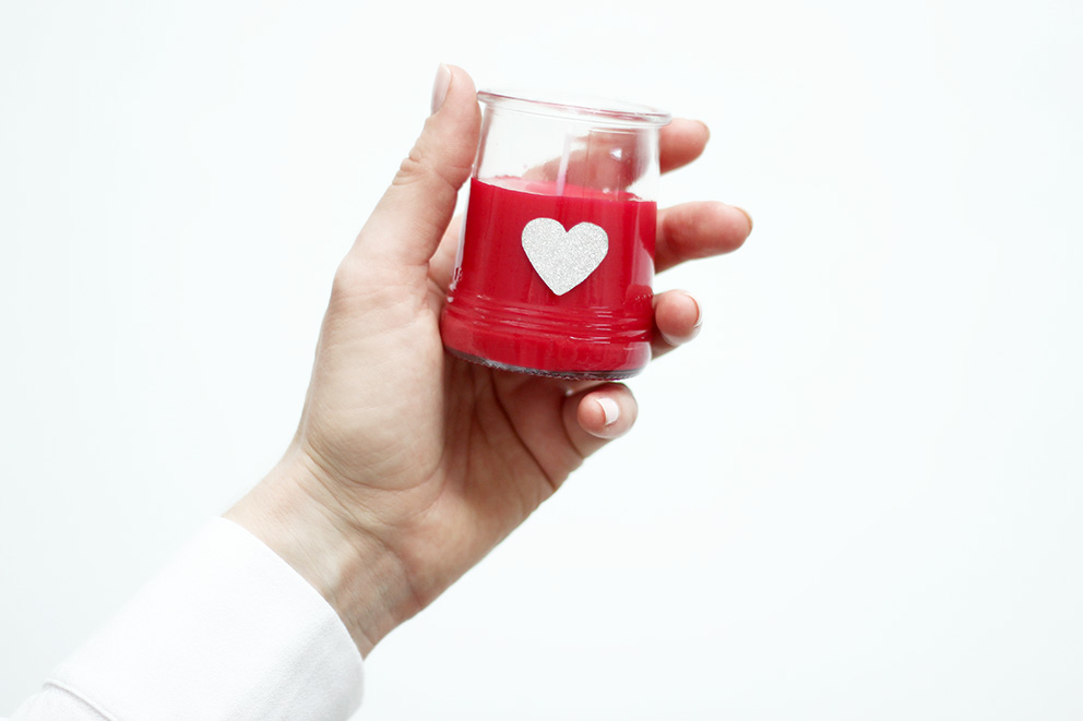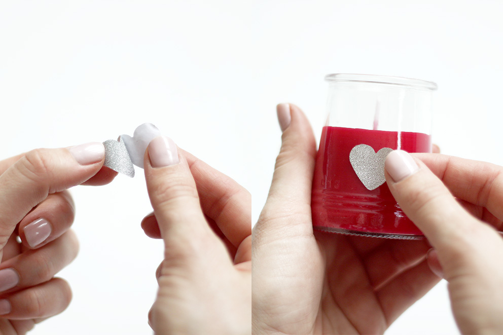 Décollez l’opercule et collez votre petit coeur sur votre bougie.