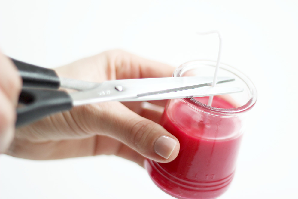 Une fois la bougie prête, coupez la mèche à 1 cm.