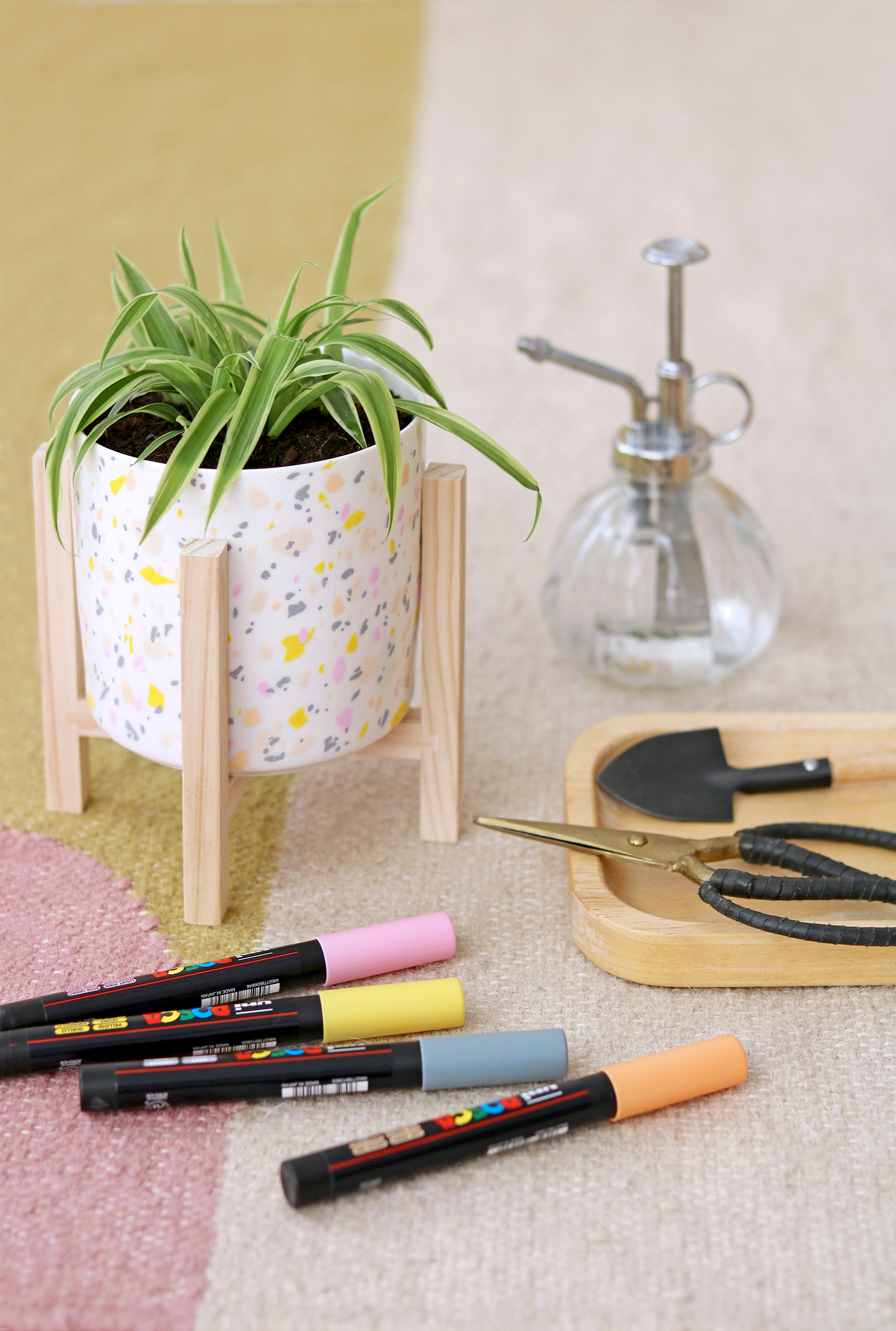 Il vous faudra : 1. Un pot à plante Cultura et 5 feutres de couleurs indélébiles dénichés chez Cultura également