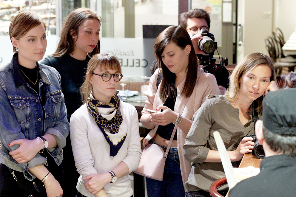 cellerier halle de Lyon paul bocuse rencontre artisans lyonnais banque populaire gastronomie halles de lyon paul bocuseUne fois nos papilles titillées, c’est près de la maison Lechat que nous sommes allés préparer de délicieux hors-d’oeuvre avec soin et attention. Sous les conseils de la chef commise (en l’absence de Phillipe Lechat malheureusement) nous avons mis la main à la pâte – c’est le cas de le dire – pour faire de ces recettes, de belles réussites. Je me suis amusée à faire des petites verrines aux crevettes au pesto et c’était délicieux !