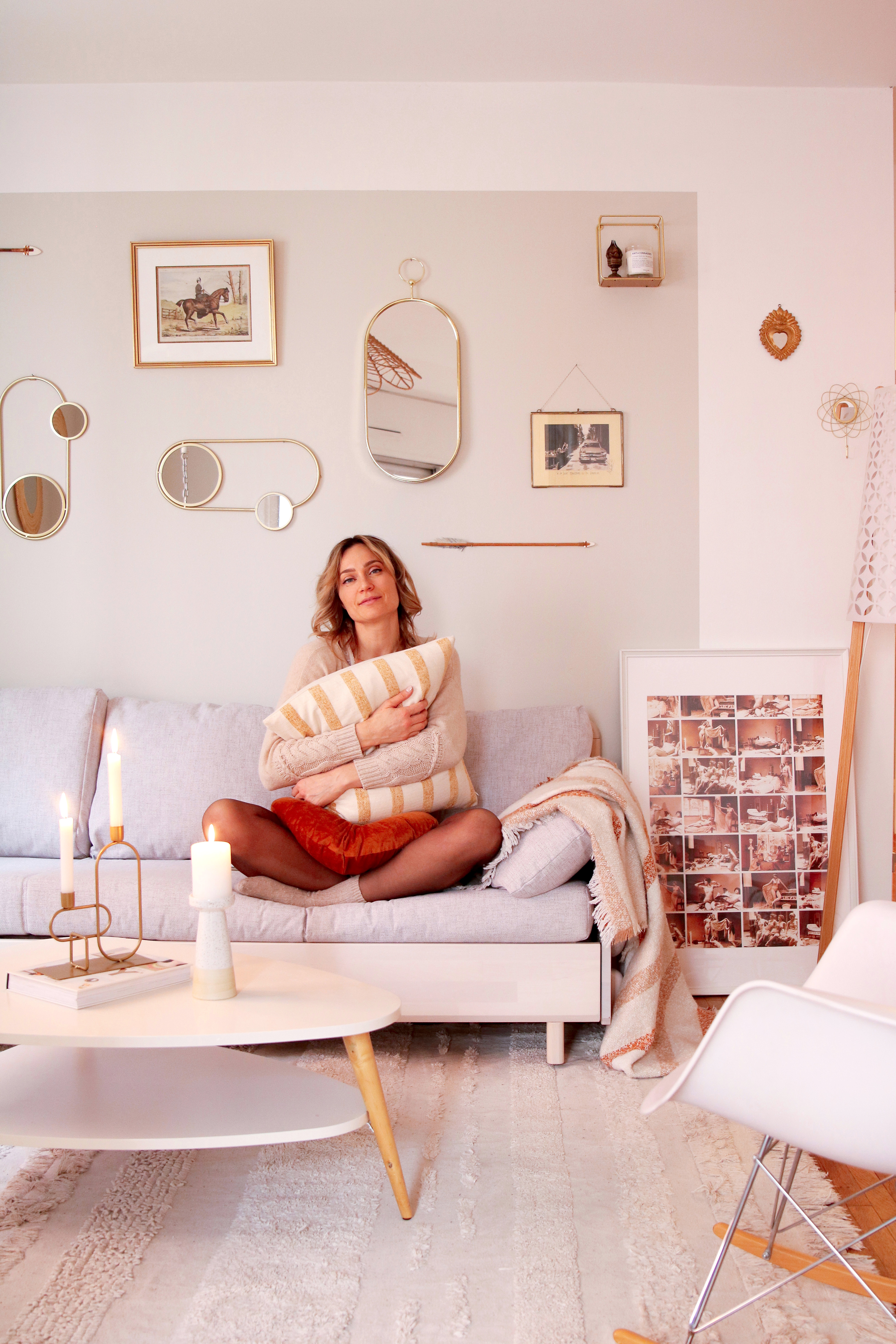 Et sinon, on en parle de mon canapé-lit Tediber ? Victime de son succès, il était en rupture de stock, je l’ai donc attendu patiemment pendant deux mois, mais ça en valait la peine, croyez-moi ! Lorsqu’il a enfin pris place dans le salon, la magie a enfin opéré. C’était vraiment la pièce manquante de mon salon. Le gris du canapé, assorti au mur de la même teinte, ça marche tellement bien ensemble, n’est-ce pas ?