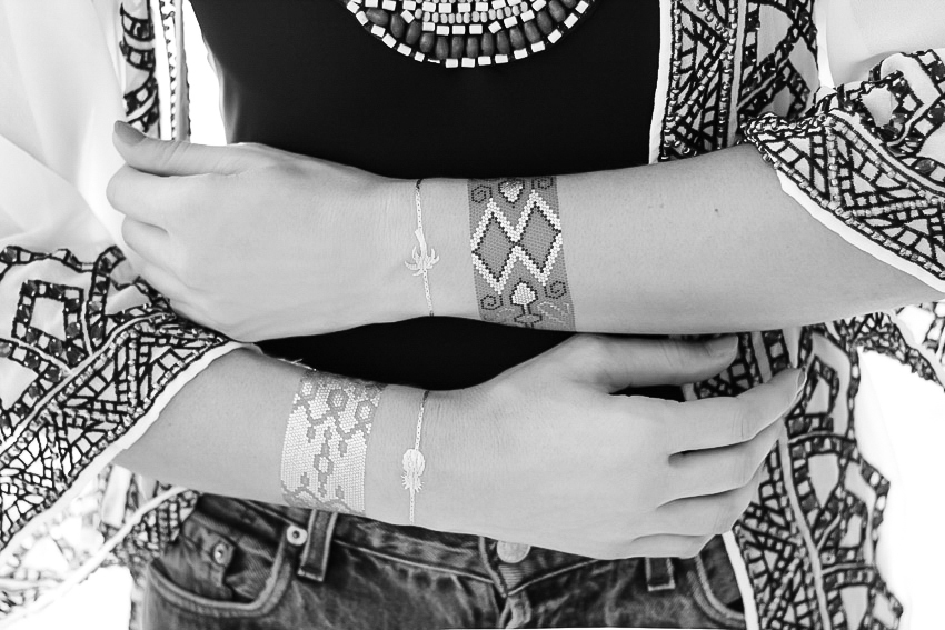 Dernier look shooté près du petit village de Sainte-Luce, au sud de la Martinique. J’ai eu le big crush pour ce monokini Pamela de Beaumane, issu de la collection Magic Africa, qui mixe avec une grande élégance, les matières, les formes et les couleurs. En plus, les produits sont éco-friendly, c’est-à-dire que les matières qui le composent sont respectueuses des normes de développement durable. De nos jours, ce genre de détail n’est pas négligeable. Du fait de son joli plastron coloré, j’ai affiché mon maillot comme si c’était un haut, pour aller vadrouiller. Mais avant de quitter le studio, je me suis parée de mes bijoux de peau préférés. Ce n’est pas une nouvelle ici, j’adore les tatouages éphémères de la marque Bernard Forever. Et leur dernière collection, en partenariat avec la marque Floramazona, est une petite merveille. Alors hop ! Une éponge, un peu d’eau . . . et à moi les jolies manchettes !