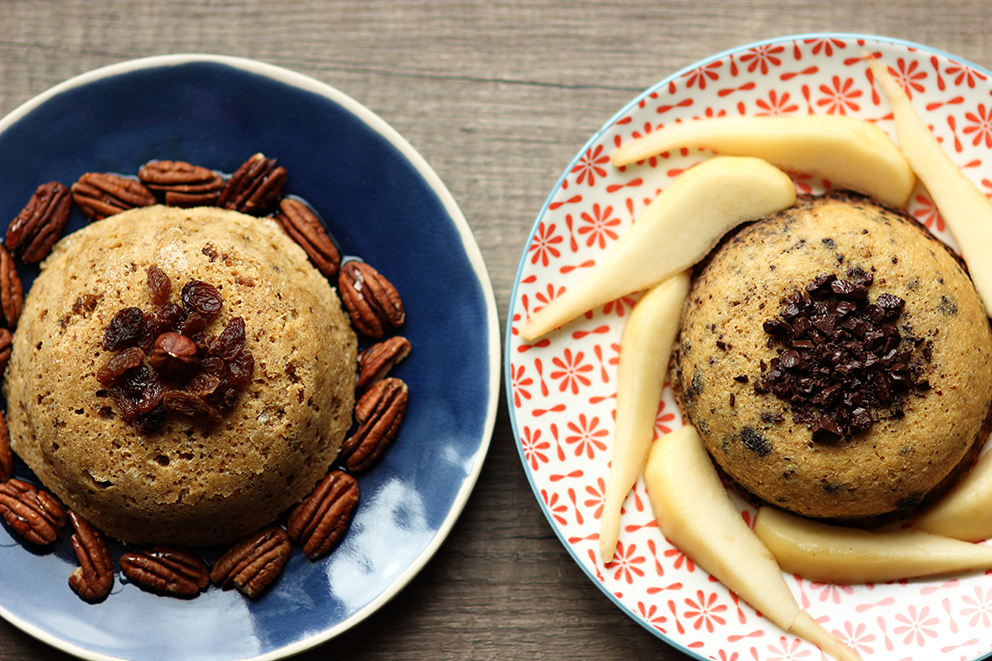 Bref, quelques battements de fourchettes et « Ding » de micro-onde plus tard, ta-daaa ! Il est temps de juger. Je retourne mes Bowl Cake dans mes plats (Yeees, ils se décollent tout seul !), je fais une jolie présentation pour me donner du courage, je coupe un morceau, je ferme les yeux, j’ouvre la bouche…